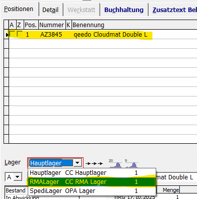 Der Bestand des Artikels muss auf RMALager umgestellt werden, damit kein Versand der Bestellung erfolgt.