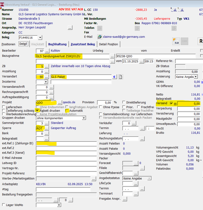 Wenn diese Voraussetzungen erfüllt sind, wird ein Schadensbeleg bei GLS angelegt: