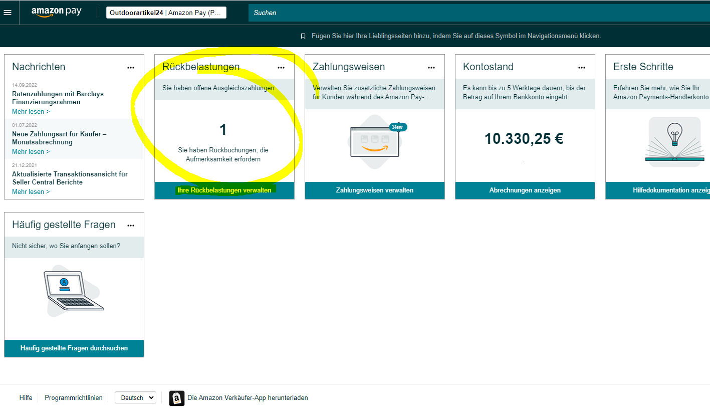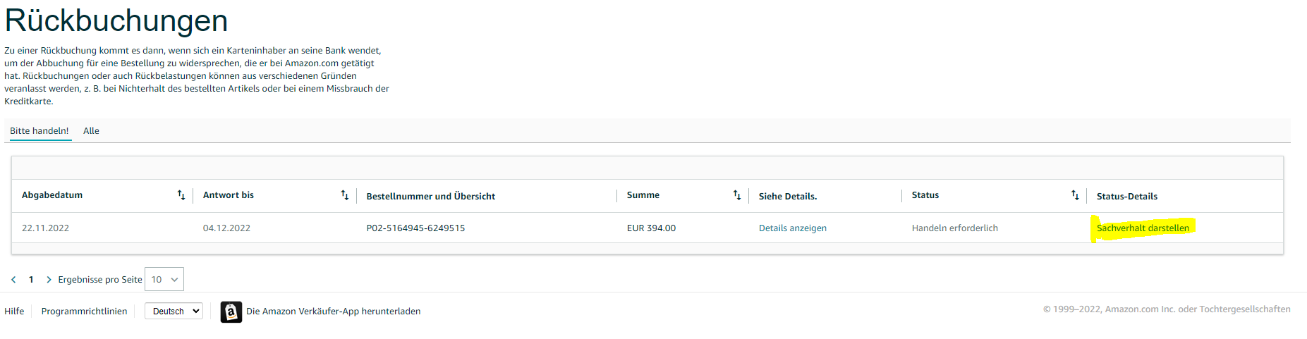 Ein Amazon Pay Rückbuchungskonflikt wird vom Kunden eröffnet. Dies kann sein weil: