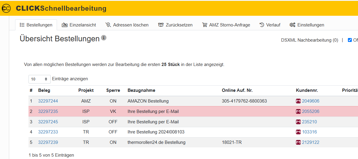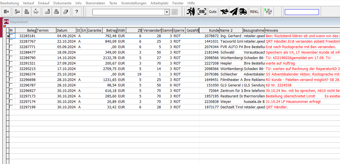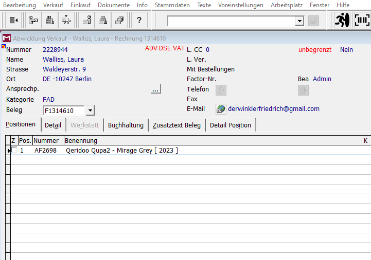 Der Beleg zum Voraustausch muss über die Schnellbearbeitung laufen, damit die Adresse geprüft wird. Andernfalls ist es möglich, dass eine Zustellung durch Adressfehler nicht möglich ist.